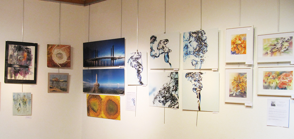 Sous le titre « Le Collectif SMAC expose à Lacanau Océan », quinze artistes présentaient chacun-chacune de 8 à 10 œuvres. Les arts représentés étaient nombreux, comme à chaque exposition du Collectif. Les voici pèle-mêle : sculptures pierre-métal-bois, collages et douelles-sculptures, peintures figuratives, peintures abstraites, aquarelles, photographies, céramiques, patchworks, mosaïques, pastels, tissages…
