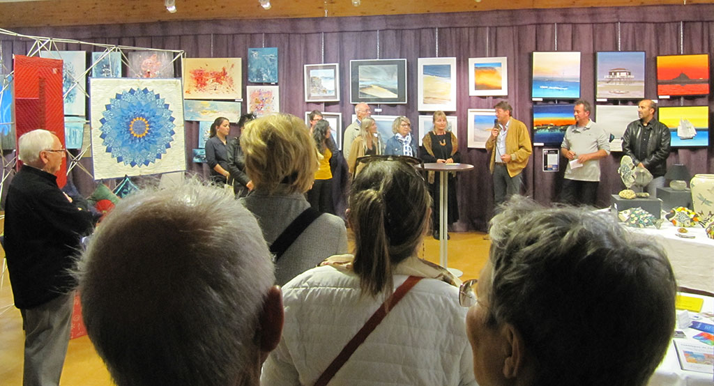 Après un agréable vernissage avec la présence du maire de Lacanau, M. Laurent Peyrondet, de son adjoint à la culture, M. Cyrille Reneleau, et de nombreux canaulais qui avaient répondu à notre invitation, l’exposition a connu une belle fréquentation tout au long de la semaine. Aussi, nous y avons vu près de 900 visiteurs, lu une trentaine de messages sur notre livre d’or, noté 35 prises de contact et assez bien vendu, pour environ 1500€, tous artistes confondus.
